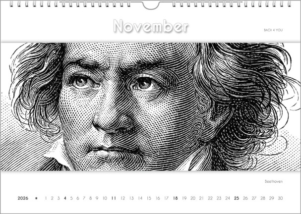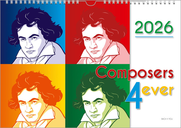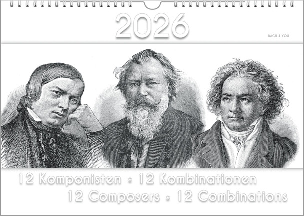 2025, 2026, 2027, 2028 ... no matter when you come by here again: This first composers calendar will appear again and again and again in every coming year. So also next year. And so you also have no decision stress, which calendar you now want to make one of your gifts for musicians this year. And which perfect gift for musicians there will be next year. We want to offer all 99 music calendars for many, many years. Even if we were to take one or two calendars out of the program to replace them with something even more creative, you would still be able to order them for many years to come. Freely according to the motto: Once a gift for musicians, always a gift for musicians.