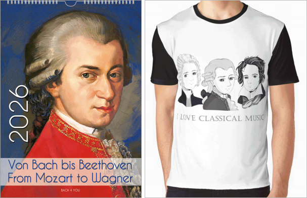 Now you may have one last important question here. Are there other gifts for musicians than music calendars on this website? What about Bach gifts? Well, how did you come up with that? Of course, you can also make Bach articles your gift for musicians, and it works just as well if you don't want to give a gift to a musician but to a music enthusiast. How could we almost forget about our Bach gifts, which are also gifts for musicians? Right, and also gifts for music lovers.
