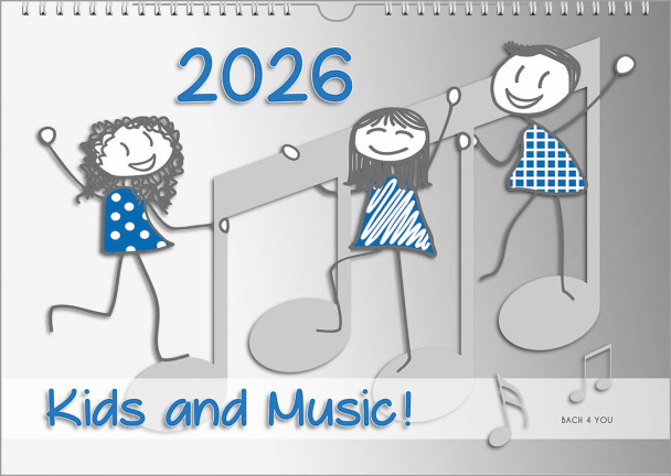 What's more, Bach 4 You offers not only cool and stylish music calendars, but also really, really conservative ones. Four main groups of interested people will be happy after learning more about this special, however tiny Publisher Company and its offer: First of all, there are music calendars for all music lovers and especially for all friends of music lovers. Secondly, there are composers calendars for all those who especially love Classical Music. The next and third specialty are Bach calendars, of course for all Bach fans on earth. And finally there are ... fourth ... the already so often mentioned above music calendars for children, small children, older children and also for young adults. You decide which of the music calendars will eventually become a great gift for musicians.