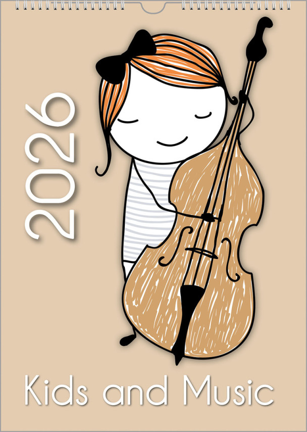 This music calendar is the perfect musical gift for very young future music fans and possibly even future Bach enthusiasts. A gang of twelve cute kids together form a whole orchestra. Each month features a musician. It is available every year. In three sizes. And in two calendar styles..