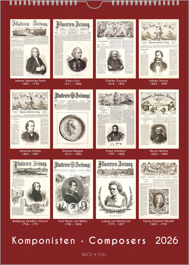 Yes, we actually have really, really conservative calendars on offer as well: This composer calendar is one of them. It is a calendar for lovers of really, really authentic historical things. It consists of twelve front pages of ancient weekly newspapers. It is one of the Publisher's hot-off-the-press music calendars. There are inexpensive composers calendars and calendars hot off the press. Feel free to learn more here about all the calendars that "could be the next exciting gift for musicians in your life." First time in 2016 and since then every year again, so also this year and next year.