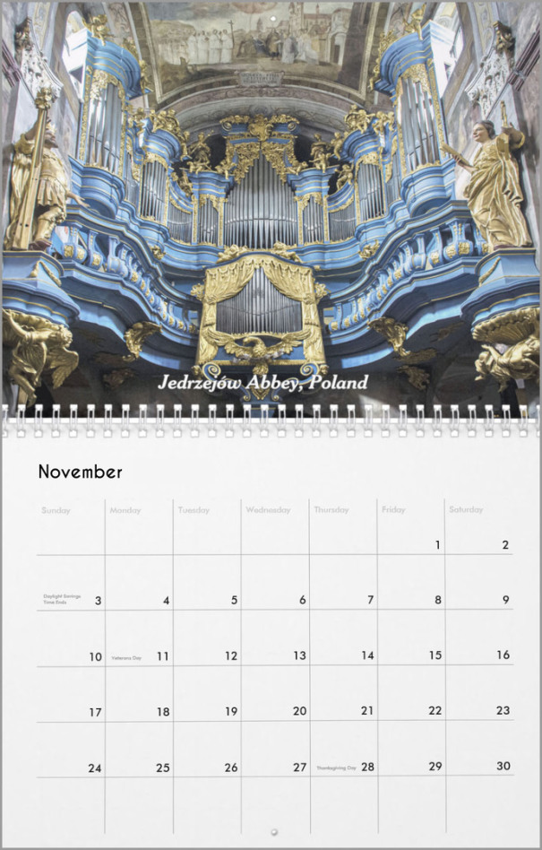Look at the calendrical above at the bottom of the monthly page: It fades into the background and "lets the artwork do its work." After all, the calendar is decoration, not a tool, on a wall. However, if you need a "tool", then the European style calendar (... the calendar in the style common here in Germany) is what you don't want. Please compare the picture above with the picture below. European style calendar or poster style calendar is what we have called our offer for those interested across the pond.