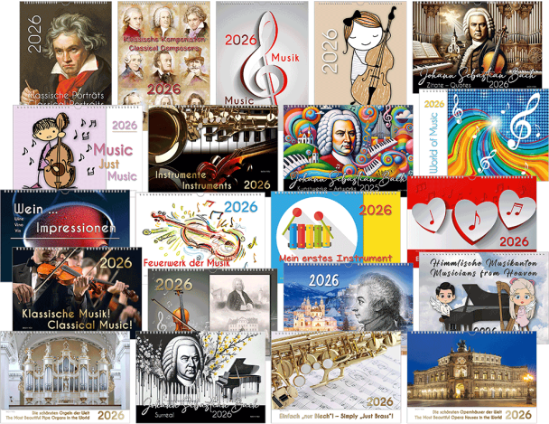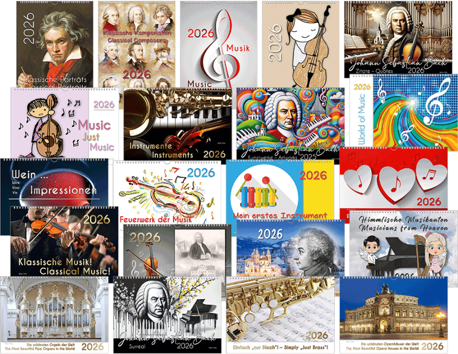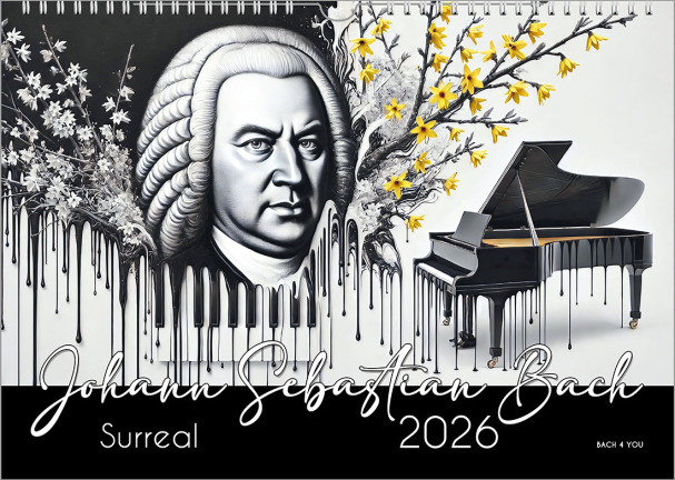Bach calendars, composers calendars and music calendars: That's what you get from "Bach 4 You", the small Calendar Publishing House in Southern Germany. There are always three calendar sizes. And they are available this year and next year. To the shop.